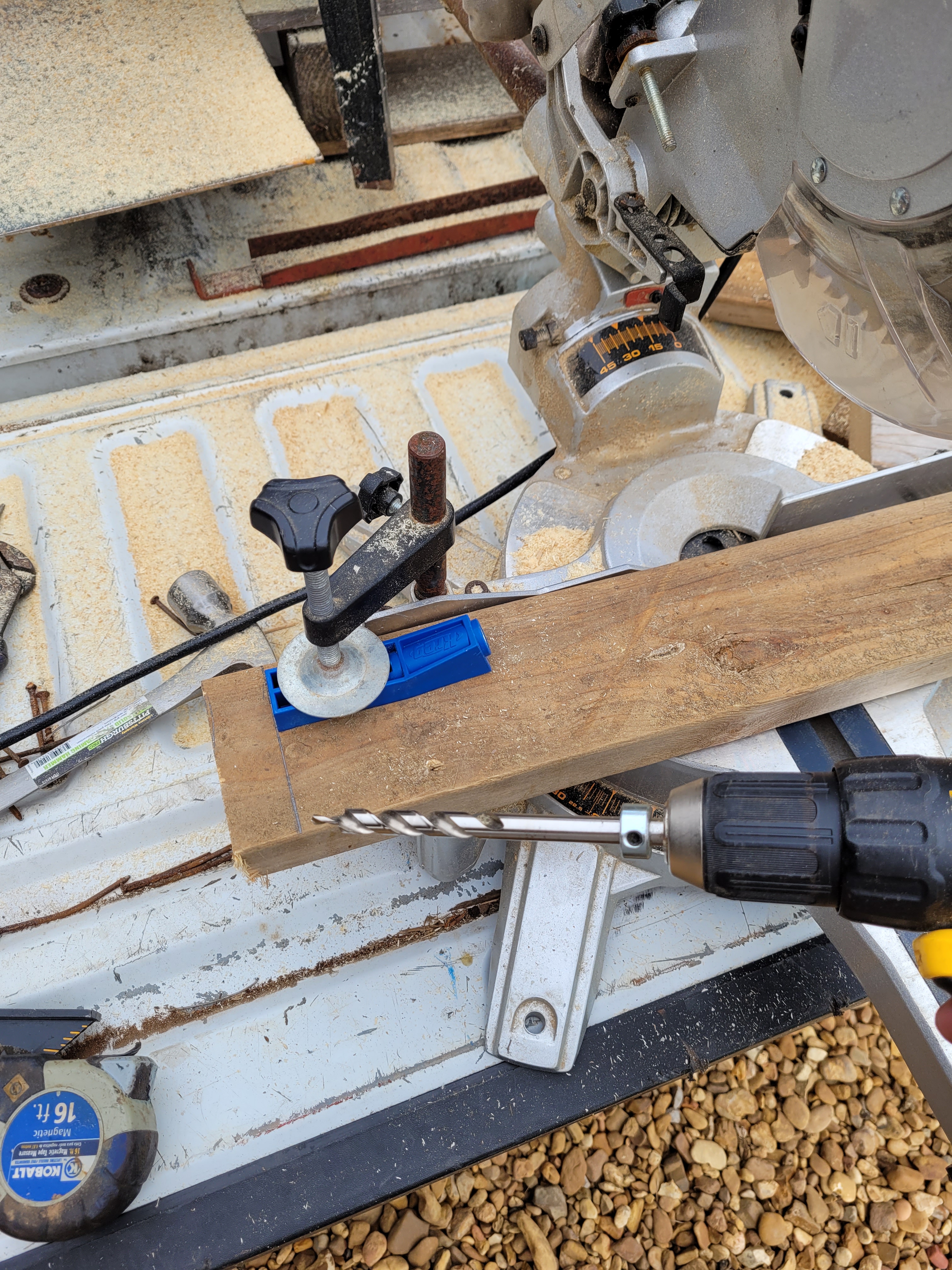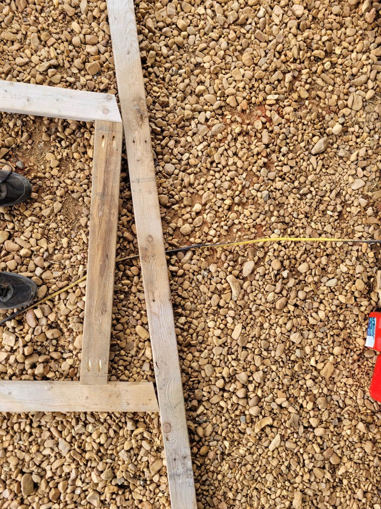It became time to set the engineering hat down and pick up my farmer hat and just make the dang thing. I had my sides built but my angles at the top were off so I found a long board to use as a straight edge and marked the line I needed then cut accordingly.