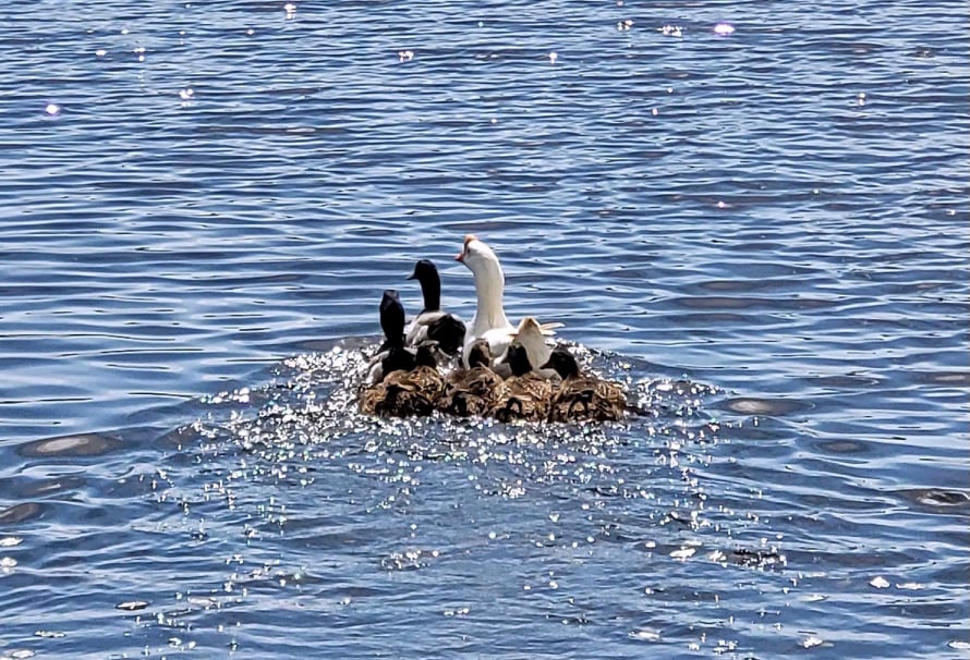 The morning after fixing the fence, the ducks were still on our pond and I declared victory. Alas, like many foolish un-blooded generals I was merely the winner of the opening skirmish. That night we receive a message from our pool neighbor that she had seven visitors in her pool. We quickly went over and herded them back into our back yard, which has more secure fences, and I began scratching my head.