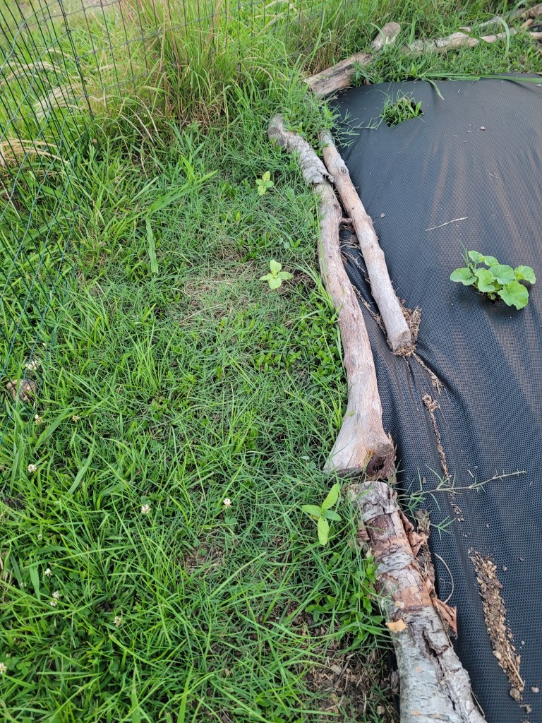 The sunflowers and okra along the outer edge of the garden are popping up. Some of the sunflowers actually made it through the ninja chicken invasion which we are happy about. The empty spots were replanted to hopefully fill the gaps and give us more beautiful sunflowers.