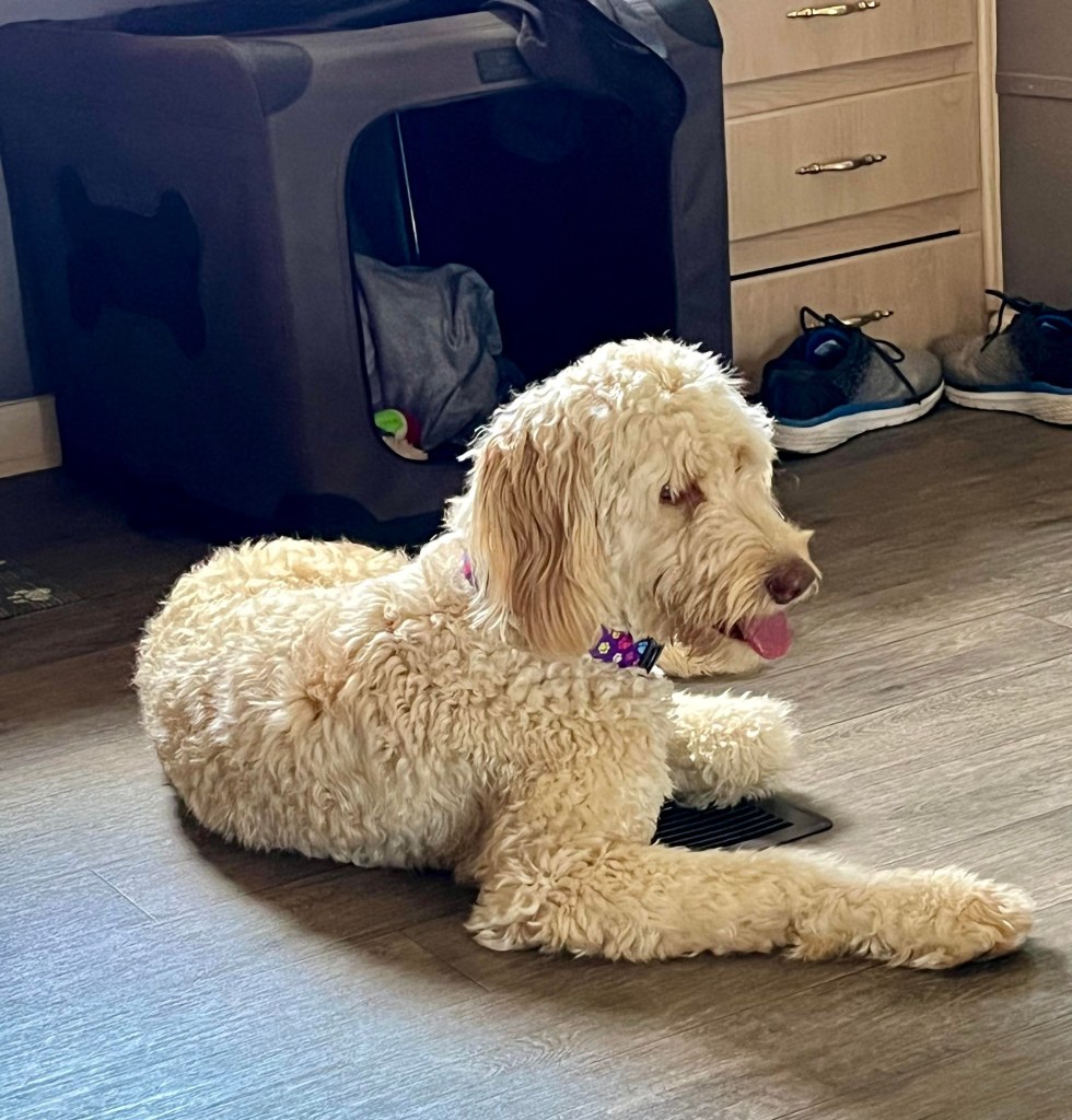 She has also felt well enough to take on a pet sitting job here at the farm. We are sitting a crazy hyper Doodle pupper that is about a year old while her family is on a great adventure for a month this summer! Moxie Jade is a handful of energy and excitement who loves to play ball and evidently chase chickens. The chickens learned quickly to stay out of the back yard if they didn’t want to get chased. She has made fast friends with Daisy but Jazzy hasn’t warmed up to her at all.